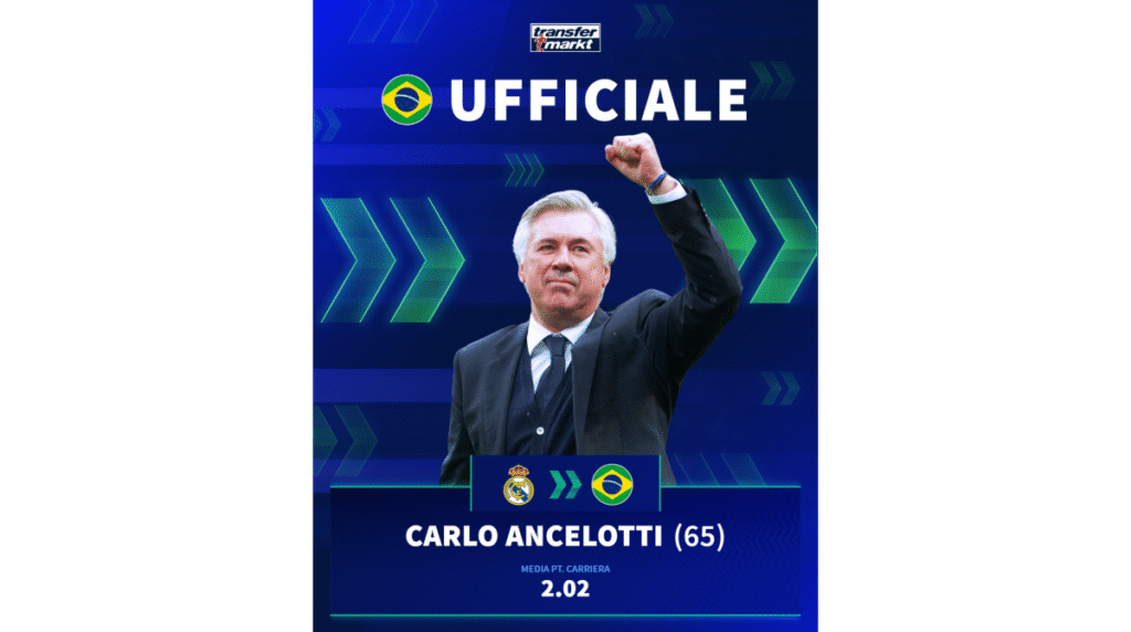 Con una nota ufficiale, la CBF annuncia l’accordo con Carlo Ancelotti a capo della Nazionale Brasiliana al termine dell’attuale stagione, in cui il tecnico azzurro chiuderà la sua avventura con il Real Madrid. Ancelotti sarà il terzo CT straniero della storia della Selecao, la prima dal 1944 quando Joreca fu invitato dall’allora commissario tecnico Flávio Costa ad affiancarlo per due amichevoli contro l’Uruguay.