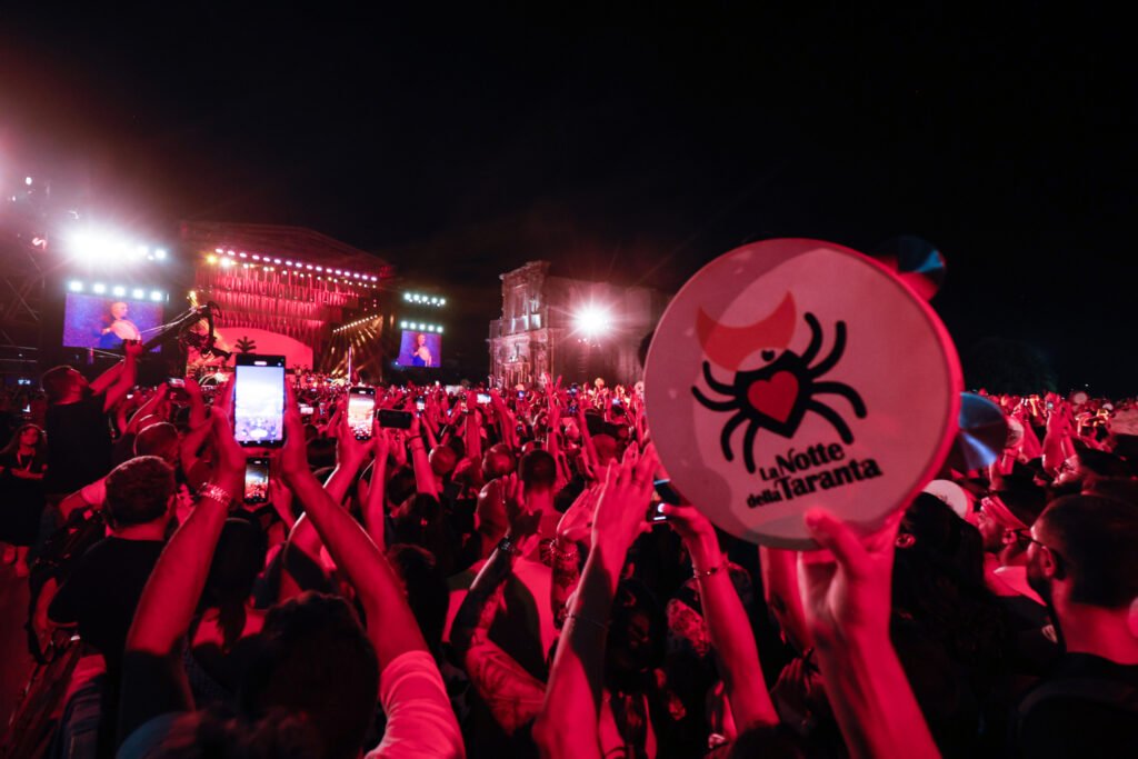 Da un’epifania di Ema Stokholma, conduttrice della serata andata in onda su Rai3 – con un ottimo 9%, tralaltro – viene la chiave del coinvolgimento del pubblico al concertone: «Non ho mai visto così tanta gente divertirsi senza un telefono in mano». La folla solita di display dei concerti, stavolta, è una distesa di tamburelli e mani che battono. E a tempo, eh. Mai, come alla Notte della Taranta, il pubblico, la terra, il popolo suonano.