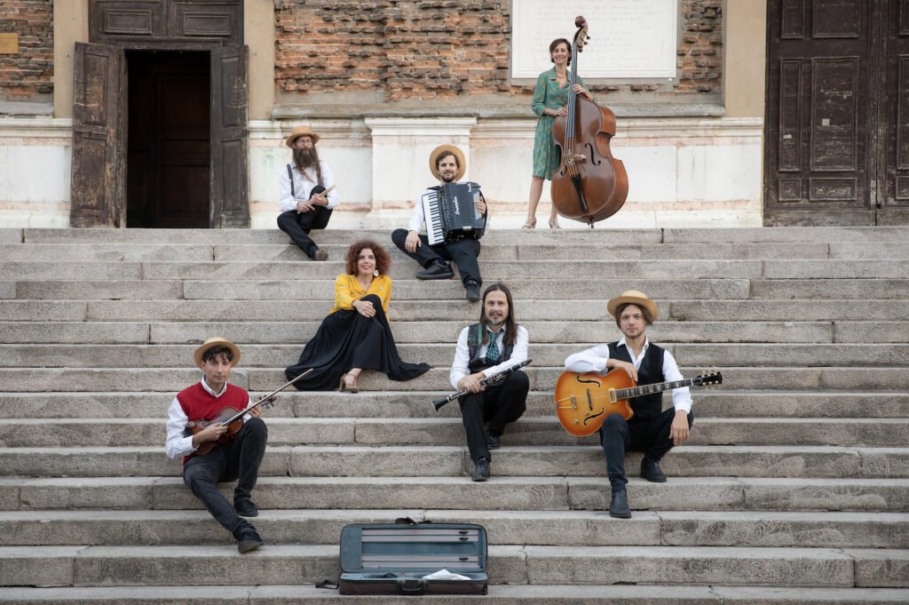 Rosamunda, Reginella campagnola e qualche altro pezzo un po’ fuori dagli standard. Abbiamo fatto le prove aperte in abbazia la mattina e poi suonato per 40 minuti. In formazione c’era un oboista al posto del clarinetto in DO, la cantante era mia cognata. Era una cosa improvvisata. C’erano Rodrigo D’erasmo e Sebastiano De Gennaro batteria, più altri amici. Doveva essere una cosa “one shot”. Ma si sa che le cose nate in famiglia sono dure a morire, nel bene e nel male.