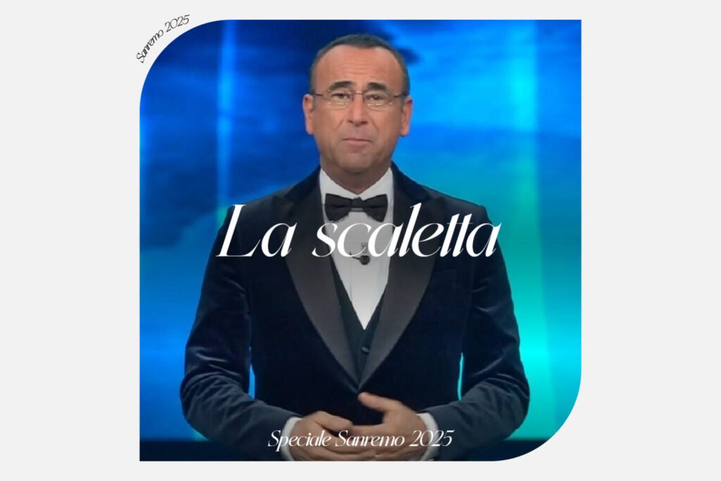 Sanremo 2025, ecco a voi la scaletta della prima serata. Quella che va dall’11 al 15 febbraio 2025 sarà la 75esima edizione del festival e vedrà alla conduzione il ritorno di Carlo Conti, dopo il quinquennio da record di Amadeus. Il principale cambiamento portato da Conti è la reintroduzione dei Giovani come categoria a parte. Per il resto rimane il numero enorme dei big che parteciperanno, ben 30 (qua li trovi tutti, qua i nostri voti in seguito agli ascolti pre-gara). In questo articolo, aggiornato man mano con tutte le informazioni che verranno comunicate, troverete tutti i protagonisti e quello che succederà. Sono già online anche gli articoli relativi alla scaletta della seconda serata, alla scaletta della terza serata, alla scaletta della serata delle cover e dei duetti e alla scaletta della finale.