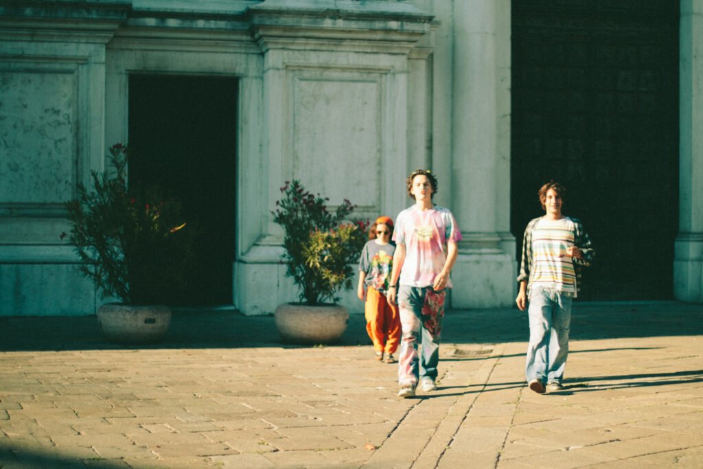 La nostra assurda storia e che, proprio per questo, merita di essere raccontata, ha inizio nell’agosto del 2020 quando Elsa Greggio, Stefano Sorace Distilo e Alvise Marin, all’epoca neanche ventenni, nel caldo afoso della prima inutile estate pandemica padovana decidono di girare un lungometraggio. Sostituendo così, da principio, a quell’ordine (costituito?) secondo cui ogni cosa deve essere fatta nei tempi giusti e nei modi consoni, chiedendo magari permesso ai grandi, ai genitori, ai maestri o alle autorità, la voglia di potersi esprimere e basta. Mettendo piuttosto davanti a tutto questo aspetto ancora di vitale importanza nei giovani – che giovani lo sono ancora sul serio. Così, incontrandosi più volte a settimana, la sera e nel tempo libero dallo studio, Alvise, Stefano ed Elsa hanno definito la trama e, pian piano, scritto la sceneggiatura. Ma non siamo qui per parlare di cinema militante.