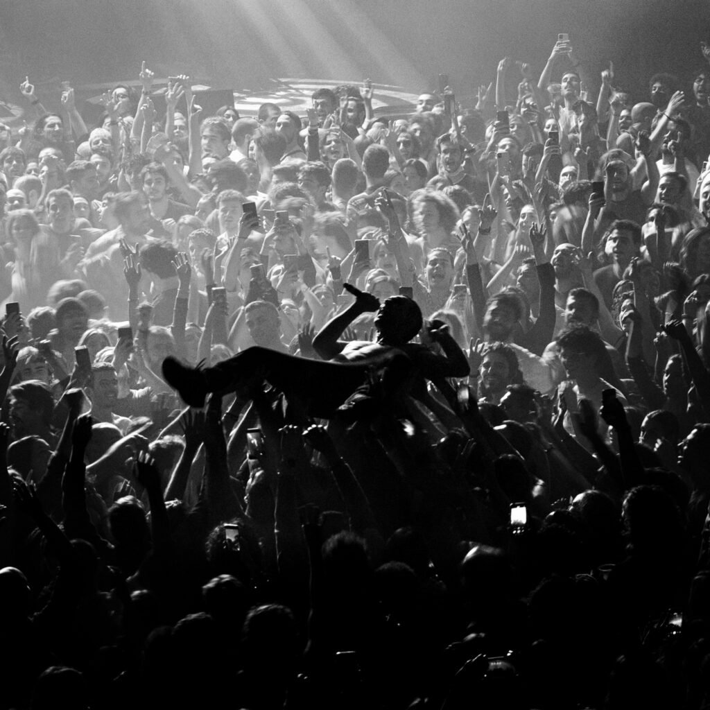 Salii rassegnato sul punto più alto del locale, a godermi il concerto. Mentre bevevo una birra, sul finale, vidi sotto di me la scena di Cosmo che faceva stage diving e veniva trasportato dai fan attraverso tutto il locale. Scattai la foto.