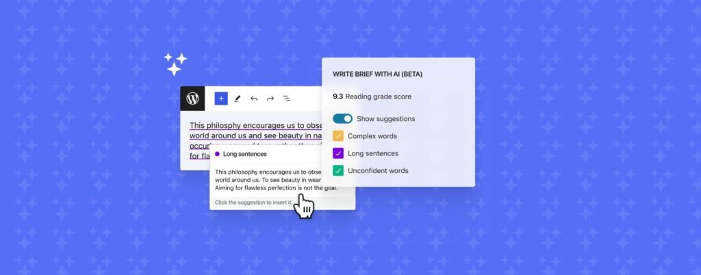 Il successo di un blog dipende da molti fattori. Uno di essi è scrivere post comprensibili da tutti, evitando parole complesse o paragrafi troppo lunghi. La soluzione offerta da Automattic si chiama Write Brief with AI. La funzionalità, inclusa in Jetpack (versione 13.7 o successive), permette di sfruttare l’intelligenza artificiale per migliorare la leggibilità.